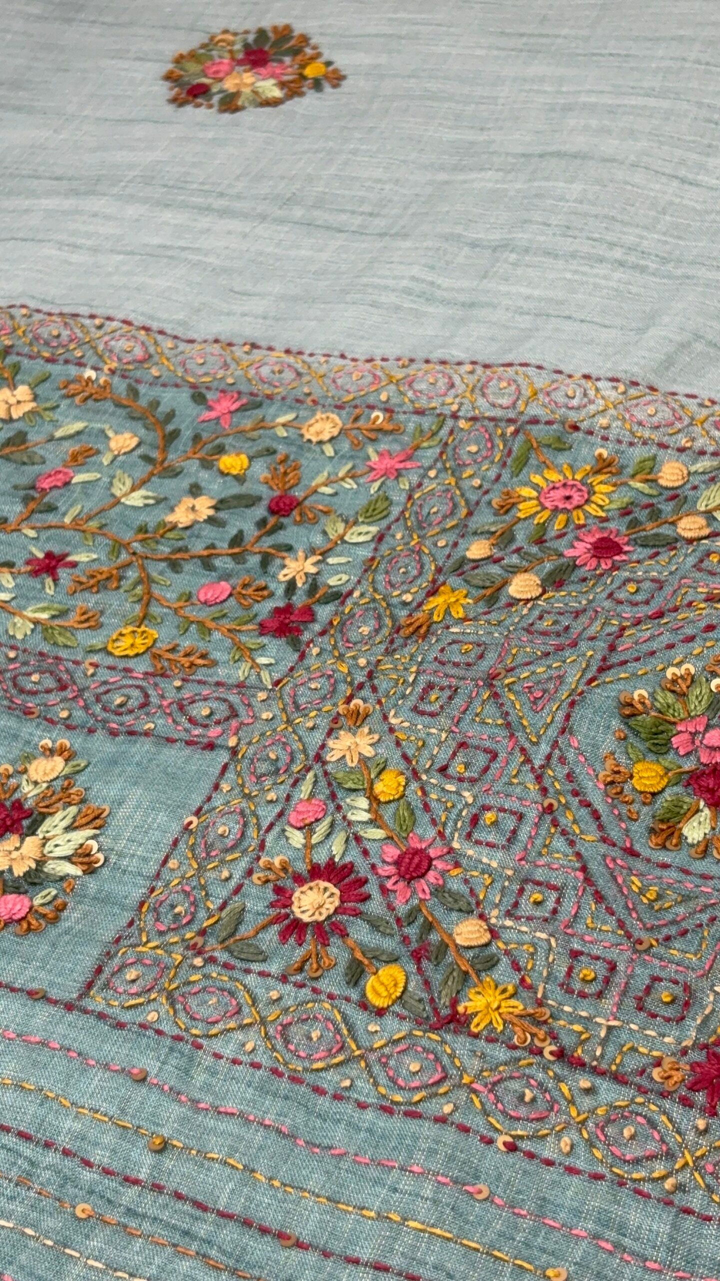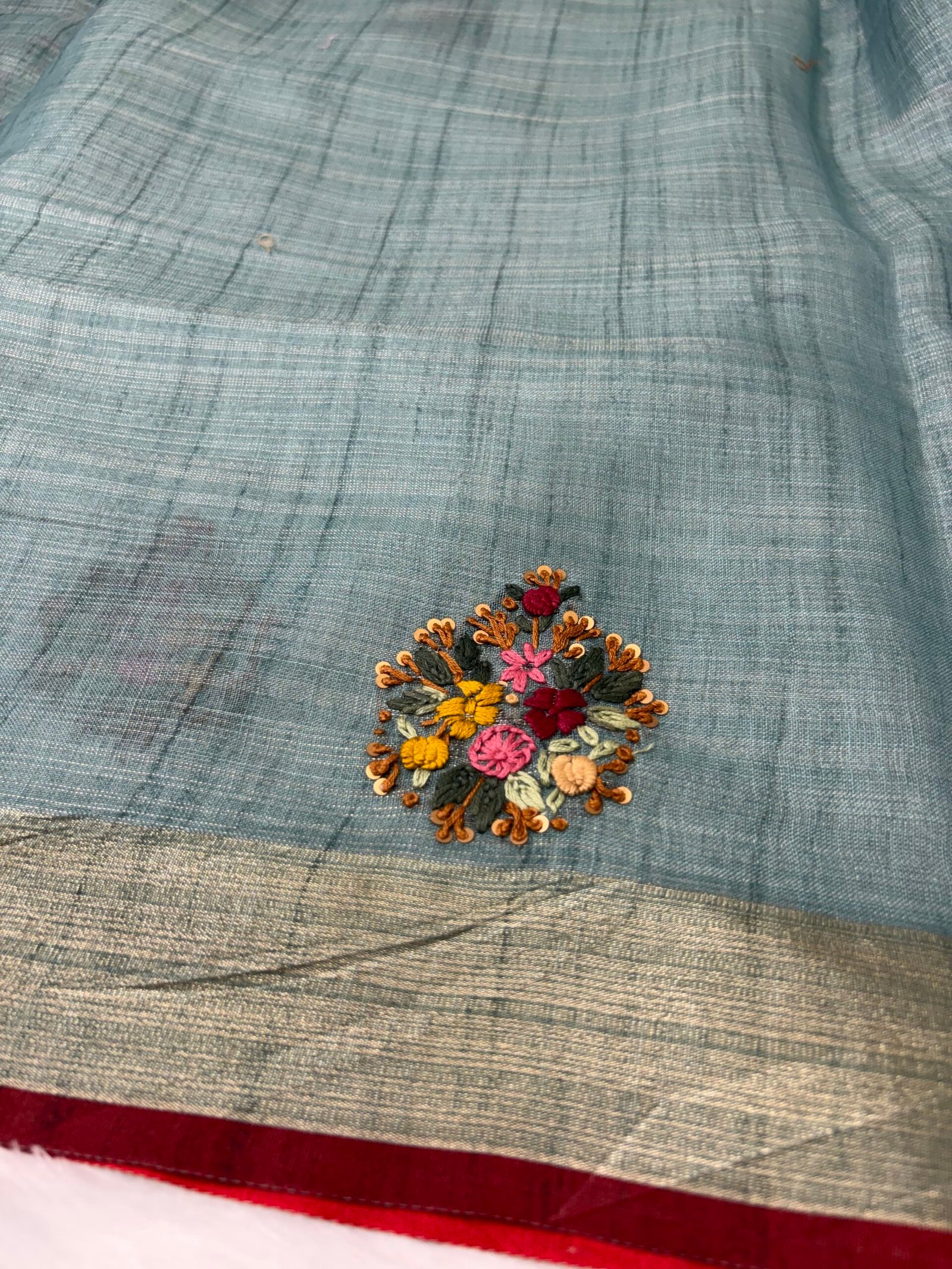 Kanta work pure linen sarees